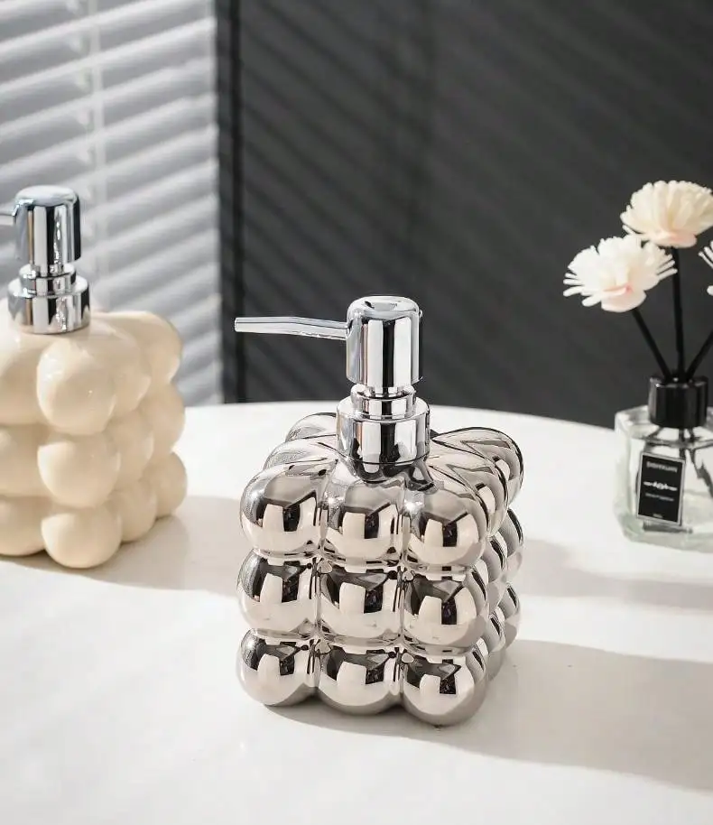 Transforme a rotina com estilo usando o Dosador de Sabonete Líquido em Cerâmica Decorativa. Com um design moderno e texturas em relevo únicas, esse dispenser é o detalhe que eleva a decoração do seu banheiro ou lavabo!